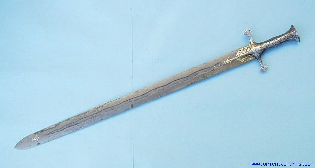 Rare 18C. Persian Straight Sword Damascus Blade - 7040