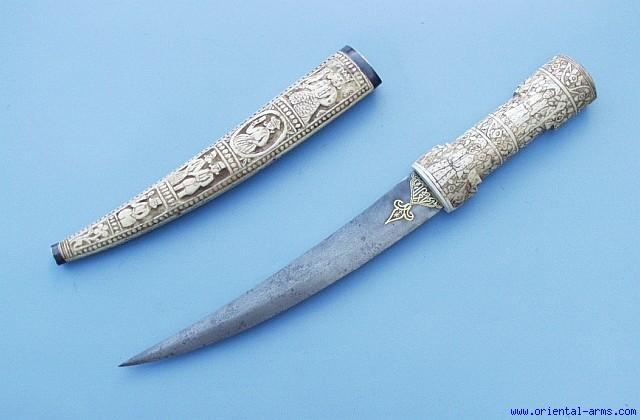 Nice Persian Qajar Jambiya Dagger. Carved Bone - 7659