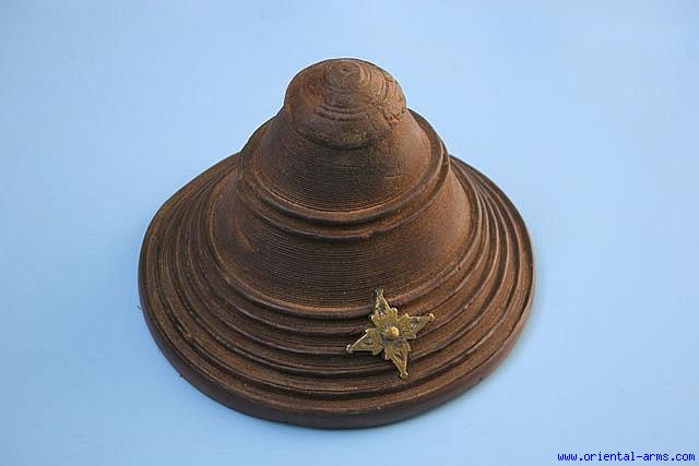 This is a Buckler (hand shield) from the horn of Africa. It is 9 inches in diameter, 7 inches in height ( taller than the 5 inches usual shields) and it is made from the hide of the Hippopotamus. It is 1/2 inches thick and in this thickness it is believed it will stop a bullet from a small caliber pistol. The cross shaped mounts are brass. Very good condition . Minor distortion to hide in the shield perimeter. These type of shields were sought after in all the area and were traded all the way from Africa through Zanzibar to Oman. |