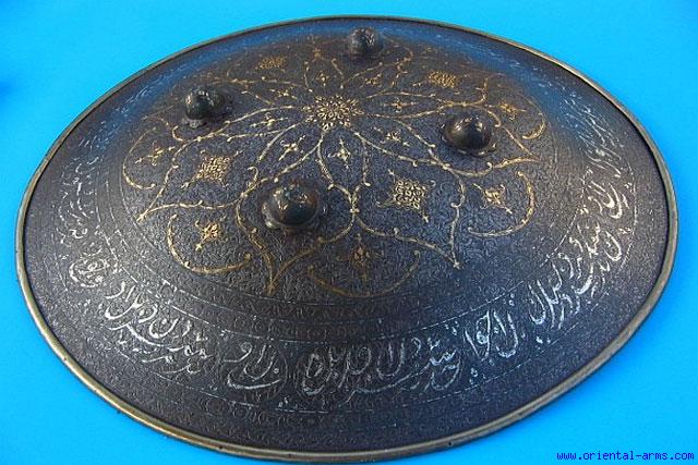 Fine Persian Steel Shield with Gold / Silver Inlay - 7912
