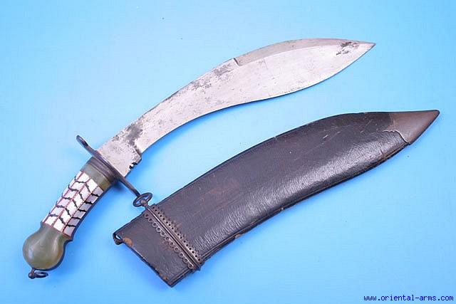 Very Good 19 C. Indian Khukuri Knife with Jade / MOP Handle - 7989