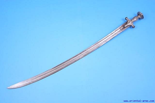 Total length is 40 inches. Good condition. Few losses to the silver foil. A small spot of forging flow in the blade near the hilt. A good piece of Indian art work. |