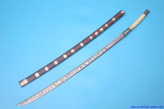 Fine Dah / Dha Sword with Silver Inlaid blade and Ivory Handle - 8324