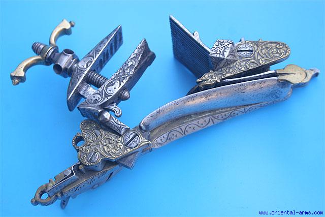 Up for sale is this Miquelet lock from an Algerian rifle. Beautifully chiseled in steel and brass. Length 7 inches. Very good condition, all in working order.