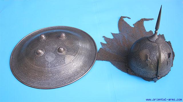 Persian Shield and Helmet, Late 19 C. Qajar Period - 8517