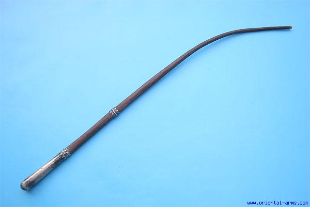 This interesting and quite rare riding whip is coming from central asia, probably Turkmenistan or Uzbekistan. It is made from the hide of an elephant tail, mounted with silver grip and central silver ring, both decorated with small turquoise stones. Length 30 inches. Very good condition. A fine scarce item. |