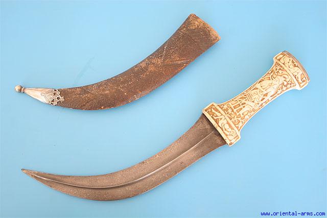 Very Fine Qajar Persian Jambiya Dagger with Carved Walrus Hilt - 9122