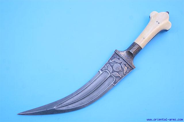 Fine Tiger Teeth Jambiya Dagger with Wootz Blade - 9795