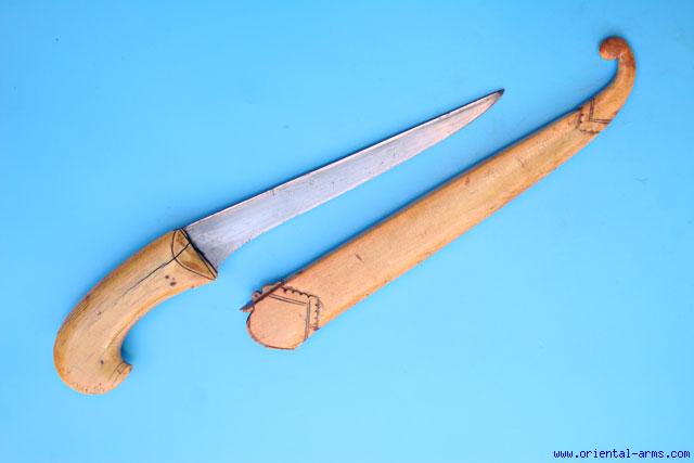 Up for sale is this fine Indian Karud Dagger, Mogul period, probably early to mid 19 C. A classical high carbon steel blade with T shaped spine, 7 inches long. Ivory handle and ivory scabbard carved from a single piece of ivory. Total length 13 ½ inches. Very good condition. Minor ivory chips and repaired cracks on the scabbard. A fine piece. |