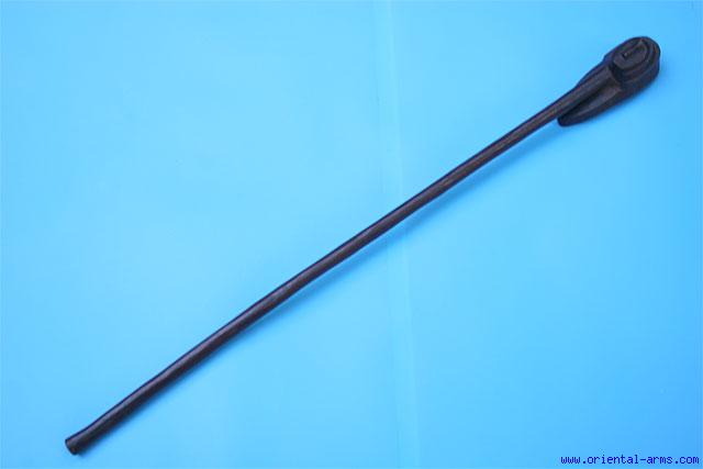 This War club is coming from West Africa, Mali or Burkina Paso. It is 35 1/2 inches long with a 6 1/2 inches head carved like a styled human face. The carving suggests that this club was also used as a scepter for a high ranking person. The carving is similar to those found on clubs and swords of the Dogon people living in the area. Very good condition. Excellent shining age patina. |