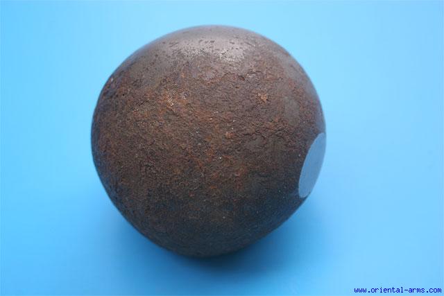 It should be noted here that there are arguments saying these steel balls are actually mill balls and not wootz ingots. It is a valid argument, yet the symmetrical shape, the recess on one side (the upper side of the cake in the crucible) and the very clear pattern on the polished area all support the possibility that this is indeed a wootz ingot.