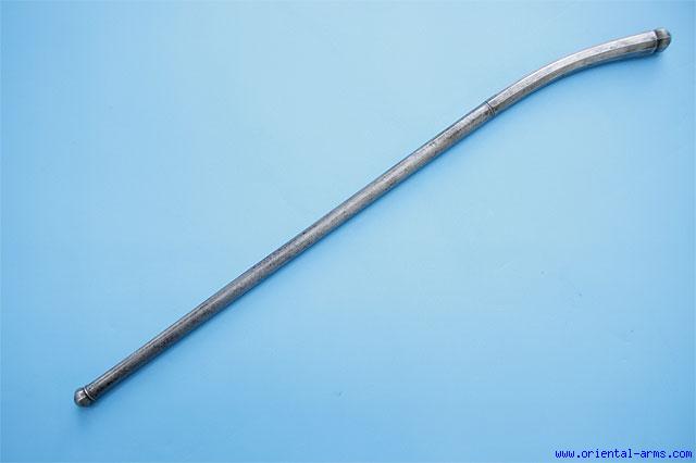This Whole steel mace is from Moghul India, 18 C. also known as Sonta. It is finely forged from hard steel rod, with slightly curved head of octagonal cross section and with a globular head and tail. Length 25 ½ inches. Very good plus condition. A very rare mace. |