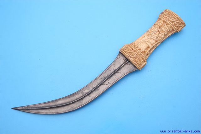 Fine Persian Khanjar / Jambiya with Carved Walrus Hilt - 11443