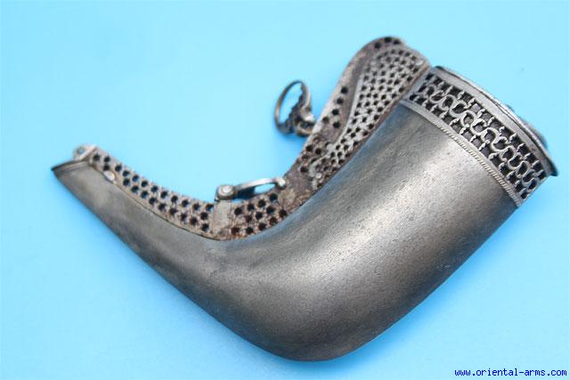 18 C. Persian Powder Flask Wootz Steel - 12190