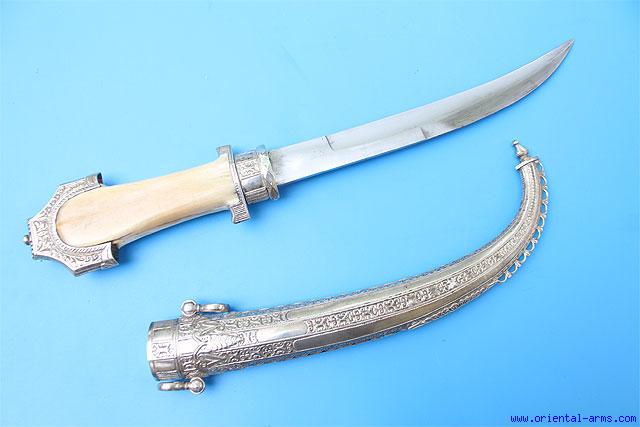 Large Silver Mounted Moroccan Jambiya Dagger - 12251