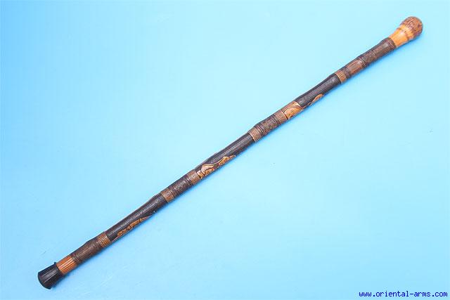 Not exactly a weapon but a fine example of Chinese carving in Bamboo. 33 inches long, very finely carved all around with Chinese characters. Very fine workmanship. Early – mid 20C.