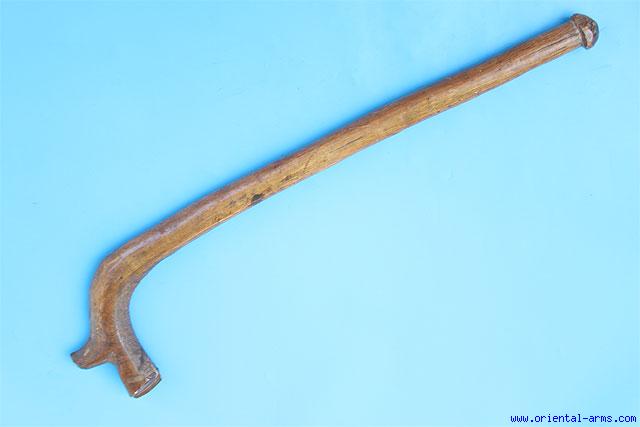This early 19 Century war club is coming from Fiji island. It is light colored 31 inches long carved from hardwood with a clear phallic shaped end. See also: G.C. Stone, Glossary... Page 184 A real piece for the Ethnographic artifact and the weapon collector. Very good condition. |