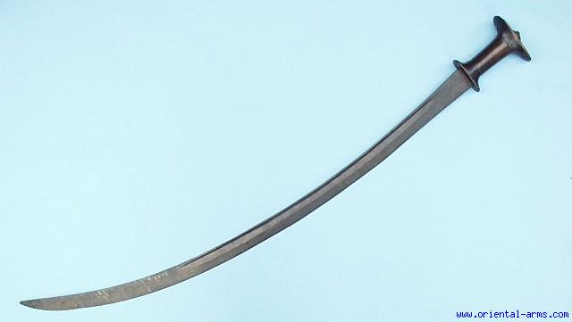 The GURADE is the Ethiopian saber. They usually have European imported blades, mounted with typical Ethiopian horn hilt. This specific one has a 33 inches long blade, with single fuller, probably European but without any marking. The hilt is three pieces horn, of very distinct fibrous structure. Total length 37 inches. Good condition. No scabbard. Very good and old patina on the blade. Few old chips of horn. Extremely low price |