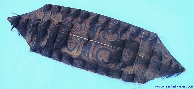 This rare wood shield is coming from Kalimantan (Borneo) and is most probably of the Kenyah people of The Borneo Dayak group. Cut and carved from a single piece of wood, this fantastic shield is painted in the classical style known as Kenyah - Kayan and decorated with multiple tufts of black hair on its front face. Total length 53 inches. Maximum width 16 inches. Very good condition. Small wood chips around the edges and few hair tufts are missing. A rare find and a prize for the collector of tribal art / weapons.