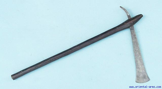 We offer for sale a real, authentic and complete 19 C. ceremonial axe of the Konde people from Zaire. A long 13 inches blade, well forged mounted on 24 inches hardwood haft. Excellent condition.