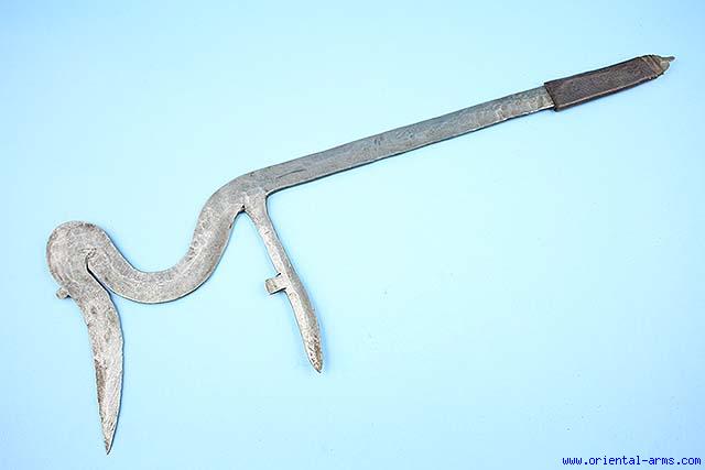 Up for sale is a later version (mid-late 20C.) of the rare Throwing Knife of the Tebu / Dazu tribes residing in Chad. Leather covered grip. Length 24 inches. Very good condition
