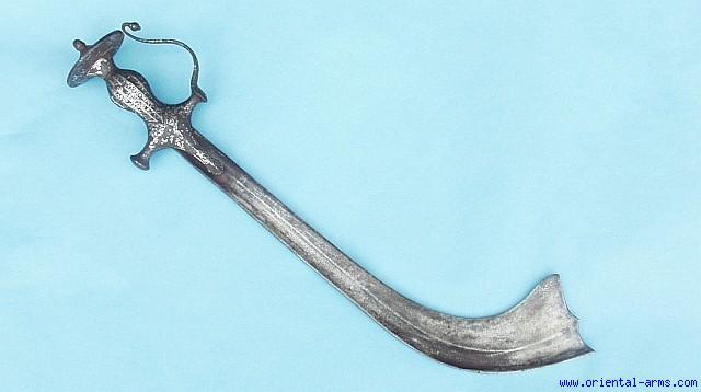 Kora swords were used in Nepal and North India specifically for sacrificial processes, and it is constructed to exactly meet this purpose: Heavy, down curving blade, with its edge on the concave side and with wide heavy tip to provide the weight needed for beheading an animal with one sword stroke.