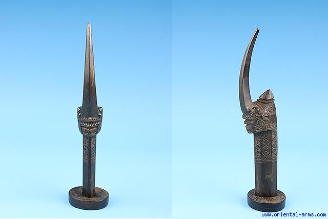 Up for sale is this rare sword handle. Such handles are seen on Visayan Bolo swords from the Philippines. Carved from a massive single piece of a water Buffalo horn. Very long 4 inches beak. Total length 8 1/2 inches. perfect condition. Most probably 19 C. work |