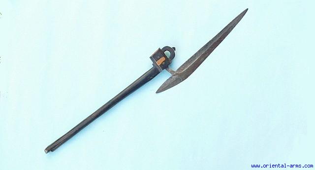 We offer for sale a real, authentic and complete 19 C. axe of the Tonga from Mozambique (but also used by the Shona of Zimbabwe). A long 13 inches helbard shaped blade, well forged, mounted on 16 1/2 inches two tones hardwood haft, with a beautifully carved head. Excellent condition with original patina and blackening of half the blade. Rare item. |