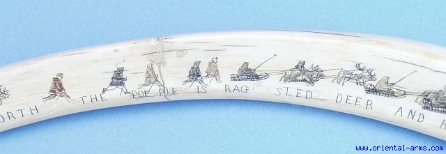 Scrimshaw Worked Walrus Tusk Dated 1923 -