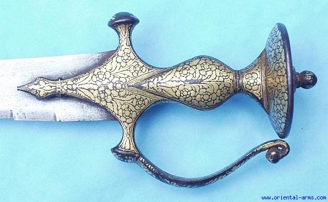 19C Indian Tulwar Sword, Gold Decorated Hilt -