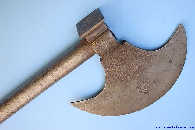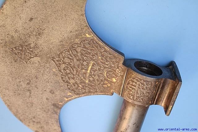 Very Good Indo-Persian Battle Axe with Damascus Haft -