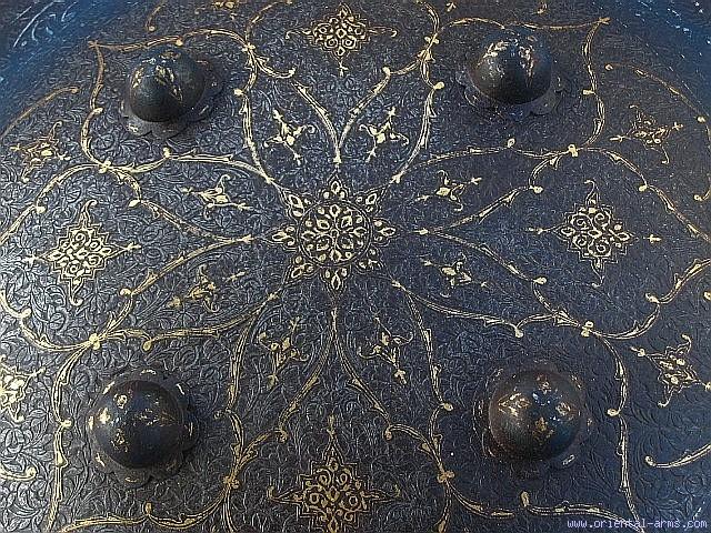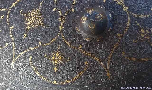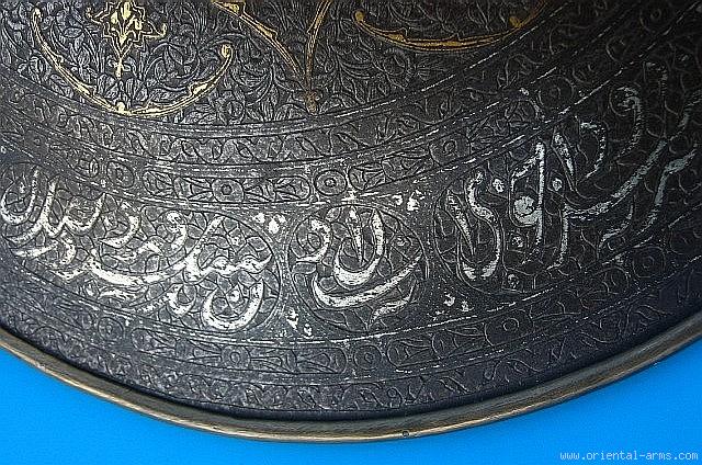 Fine Persian Steel Shield with Gold / Silver Inlay -