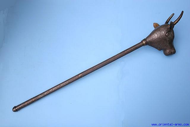 Very Big 19C. Persian Ceremonial Bull Head Mace -