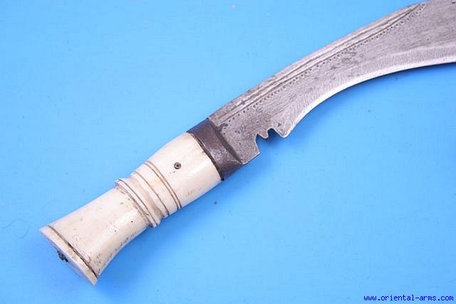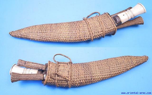 Early 20 C. Khukuri Knife with Bone Handle and Rattan scabbard -
