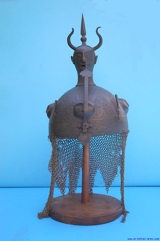 Late 19 C. Persian (Qajar) Devil Head Steel Helmet -