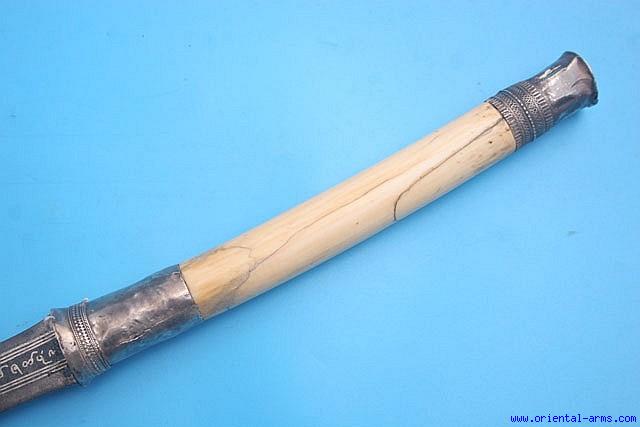 Fine Dah / Dha Sword with Silver Inlaid blade and Ivory Handle -