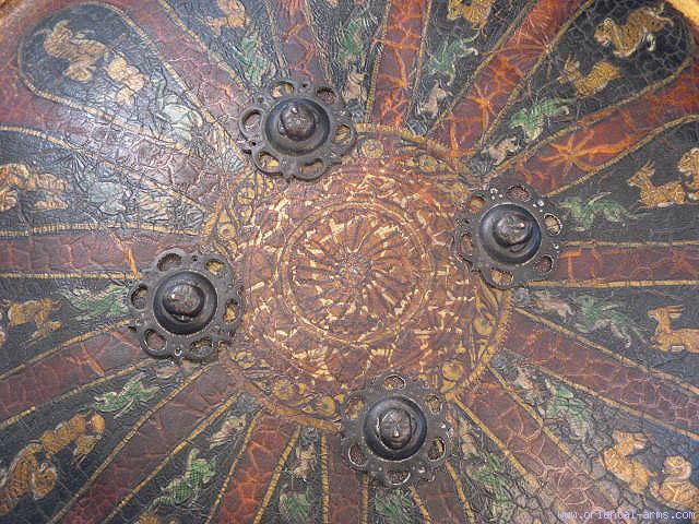 Fine 18 C. painted Hide Shield From Rajasthan, India -