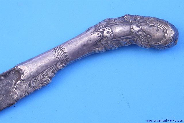 Good Piha Kahetta Dagger / Knife from Sri Lanka, Silver Handle -