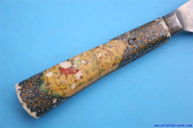 Fine Persian Small Kard Knife with Painted Grips -