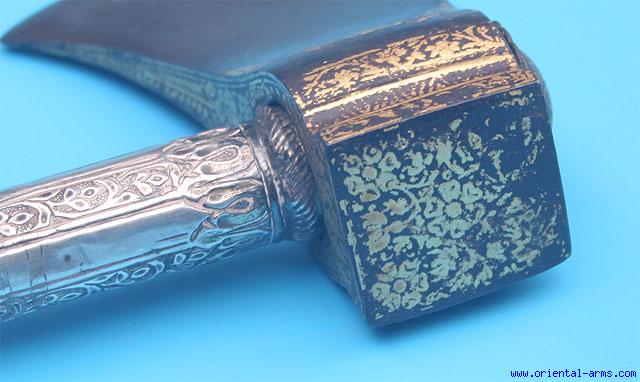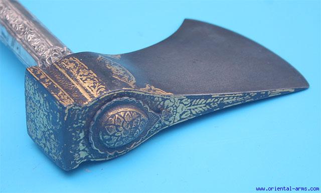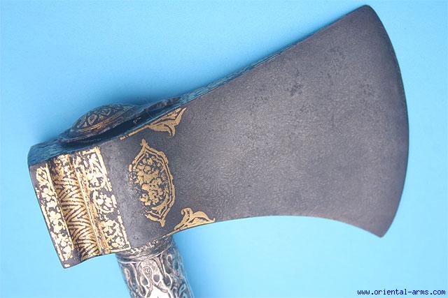 Very Fine, Wootz, Tabarzine, Saddle Axe, India. Late 18C. -