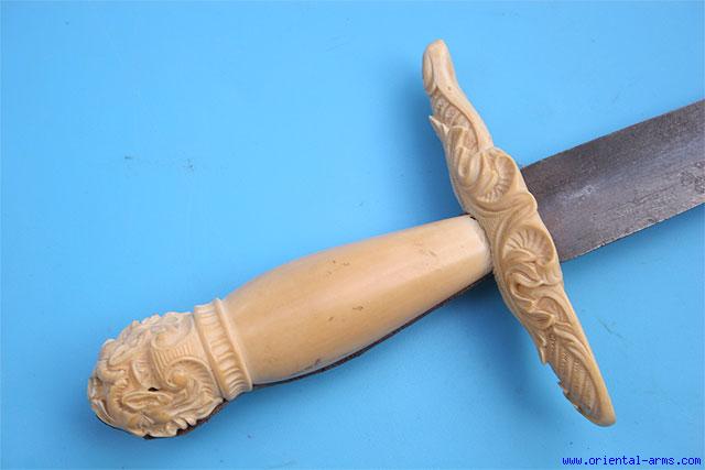 Fine French Carved Ivory Dagger, Dieppe, 1850 -