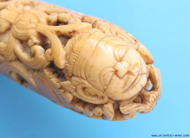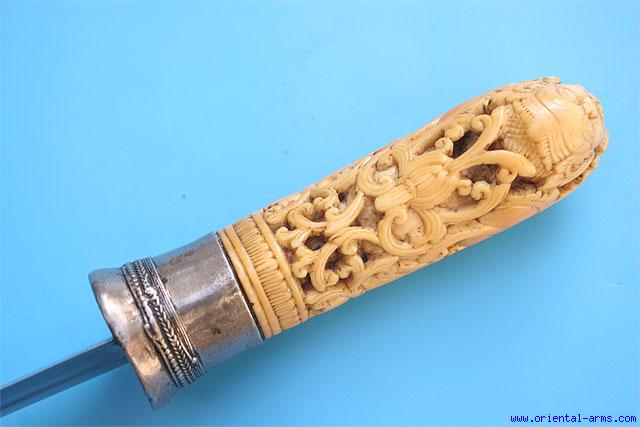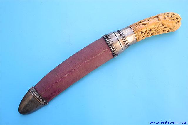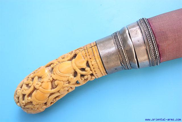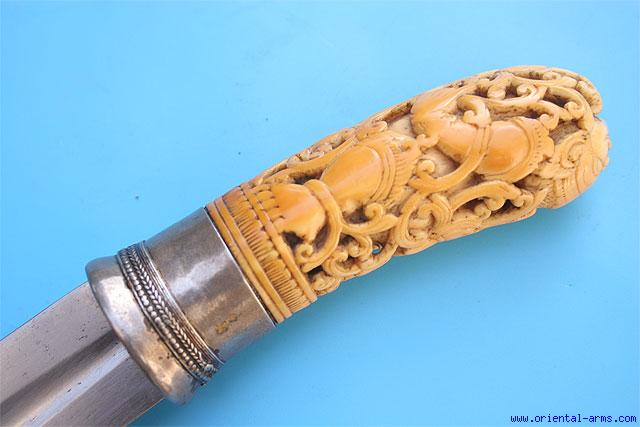Fine Rare Massive Dha Knife with Carved Ivory Grip -
