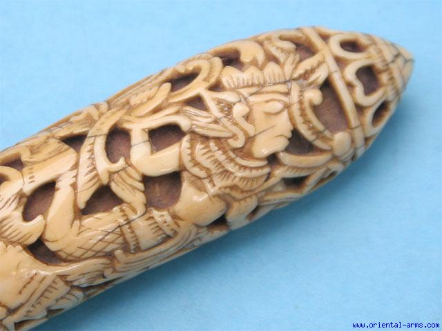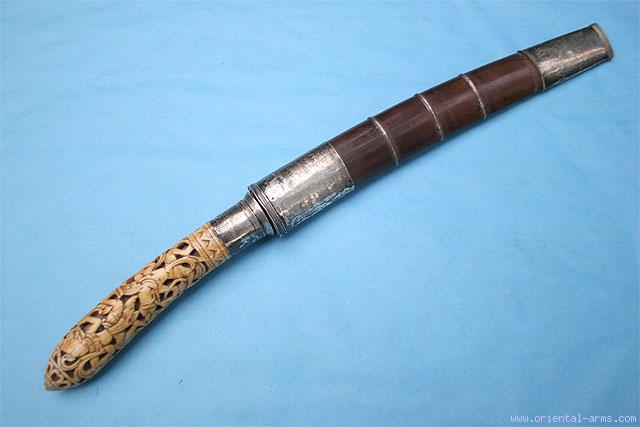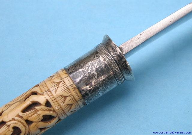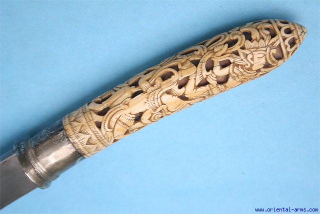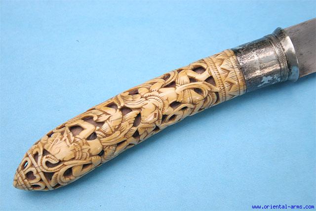 Fine Rare Massive Dha Knife with Carved Ivory Grip -