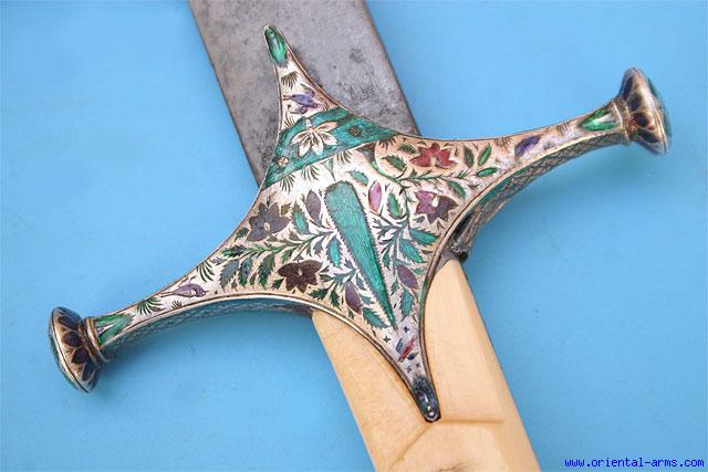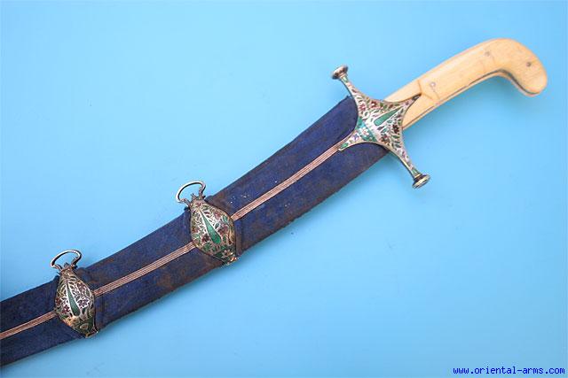 Very Fine Indian Shamshir Sword with Enameled Work -