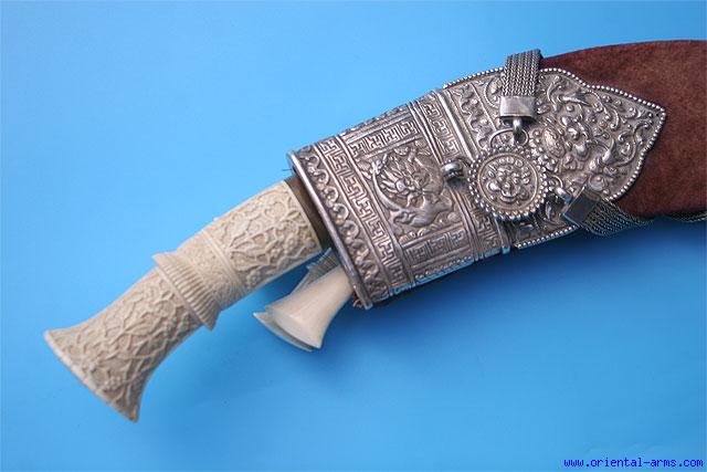 Very fine Kothimora Kukri with caved ivory hilt -