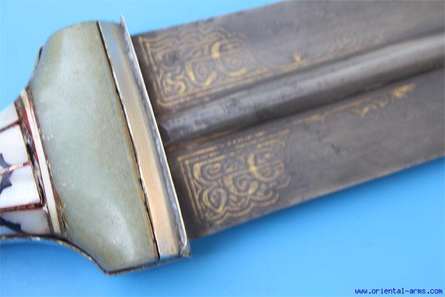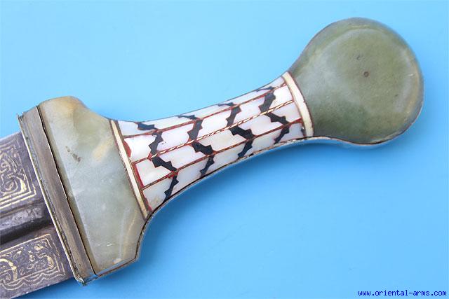 Very Good Indian Jambiya Dagger with Wootz Blade and Jadeite Handle -