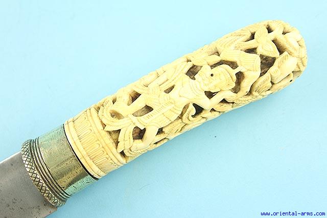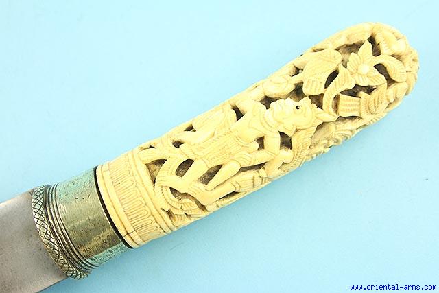 Fine Massive Dha Knife with Carved Ivory Grip -