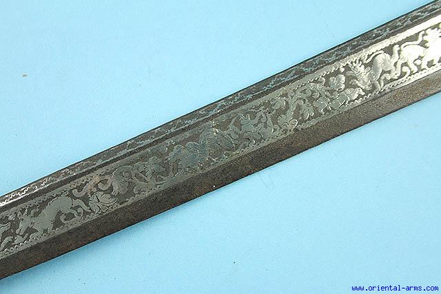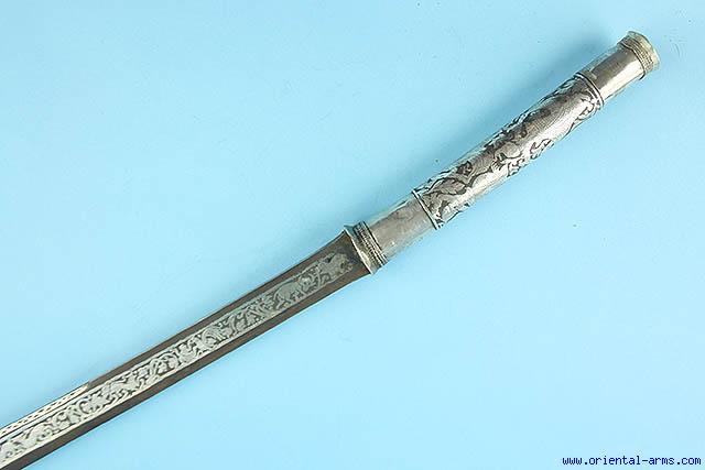 Fine Burmese Dha Sword with Silver inlaid blade -