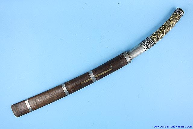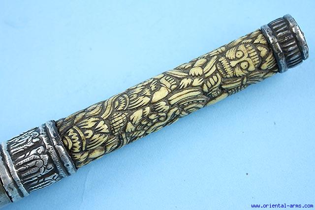 Very Good Long Dah Knife with Carved Bone Handle -