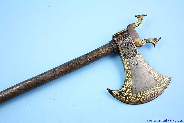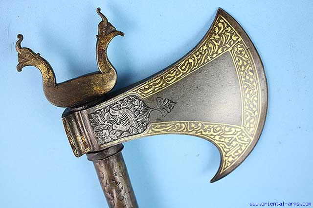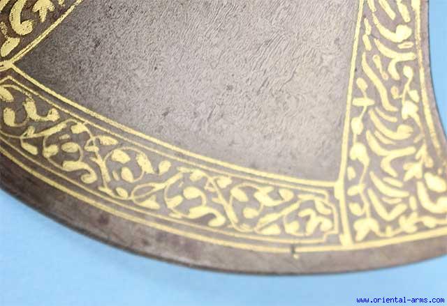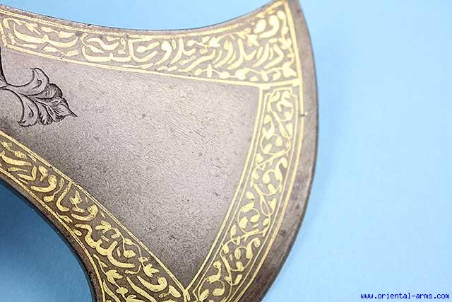 Fine, Wootz, Tabarzine, Saddle Axe, Persia. Late 18C. -